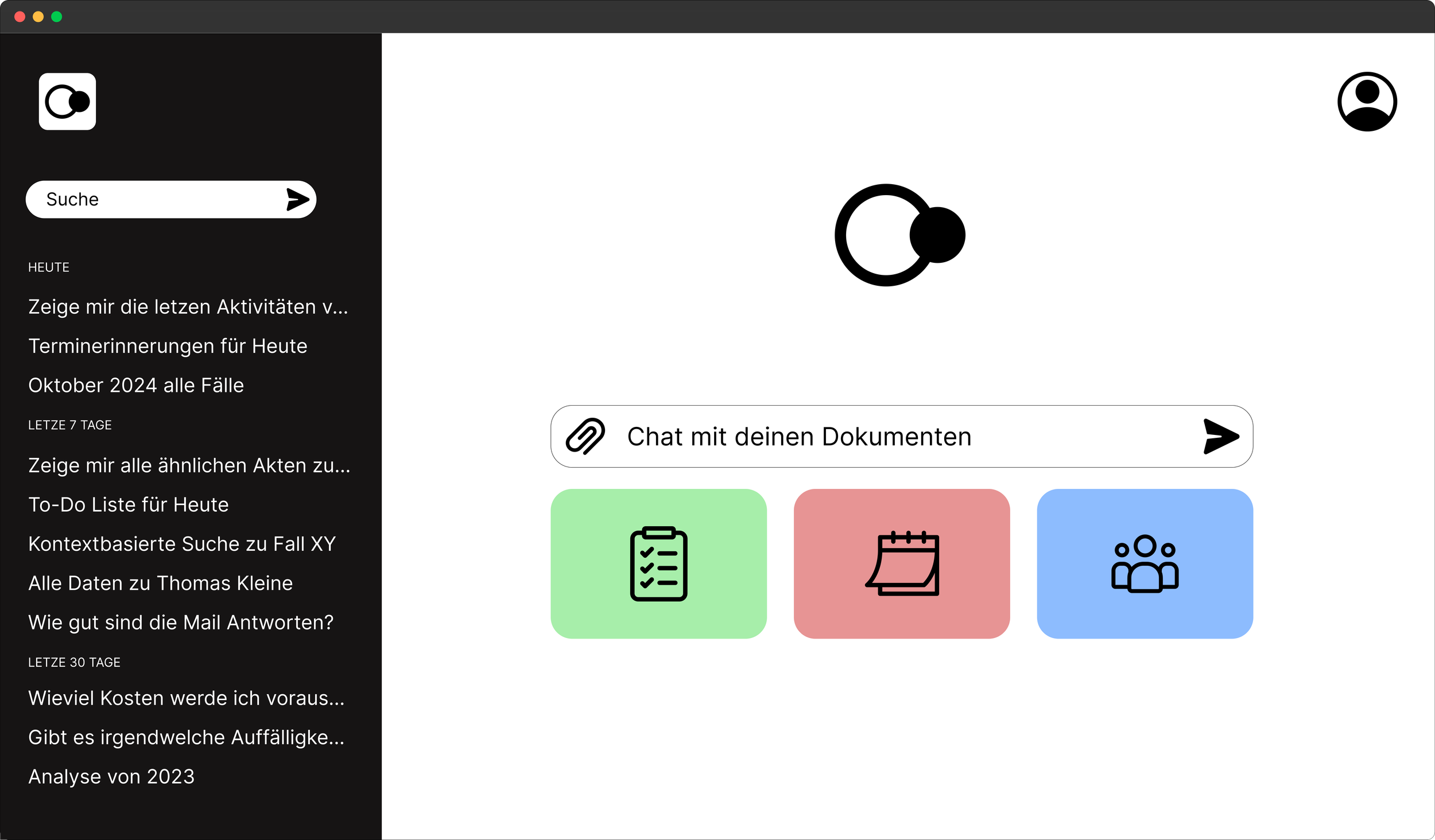 Durch das sichere Verbinden von all deinen Datenmengen, wie bestehende Aktensysteme, E-Mail-Verläufe, Terminsysteme und weitere Unterlagen entsteht das Fundament, um die künstliche Intelligenz anzubinden.
